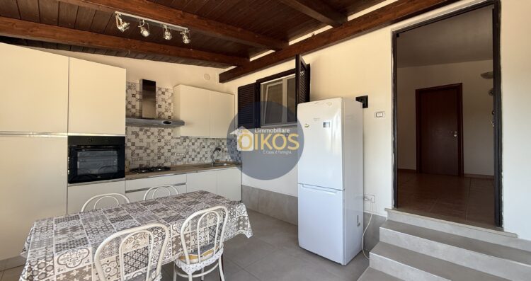 In front of a large canopy, located on a completely paved panoramic square where the dining room has been "created" with a beautiful equipped kitchen, very bright given the presence of large windows.