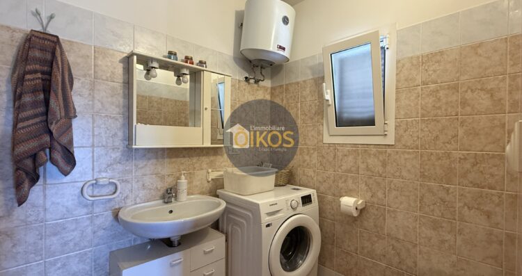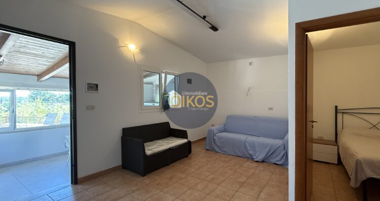 Three steps and you enter the living room equipped with reversible air conditioning that houses a sort of sitting room that can, thanks to a sofa bed, become an environment to be used as a second bedroom for guests, from here you then access a double bedroom and the complete bathroom equipped with a large and comfortable shower and connection for the washing machine.